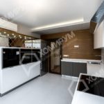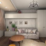 В монолитных квартирах мы стеснены в действиях, но сложные исходные данные порождают интересные решения. Так и произошло в данной квартире. Из стандартной распашной и довольно тёмной трёшки мы сделали светлую и просторную квартиру: полноценную гостиную с зоной бара, вместительную гардеробную, две уютные спальни, завуалированное дополнительное хранение в коридоре и стильную функциональную кухню.